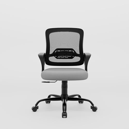 Green Soul Pebble Office Chair, Mid Back Mesh Ergonomic Home Office Desk Chair with Comfortable & Spacious Seat, Tilt Lock Mechanism & Heavy Duty Metal Base (Grey)