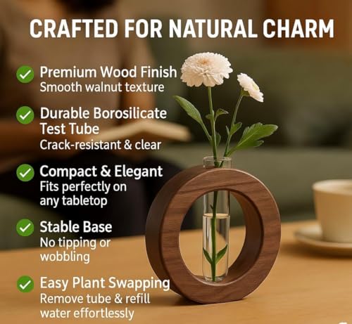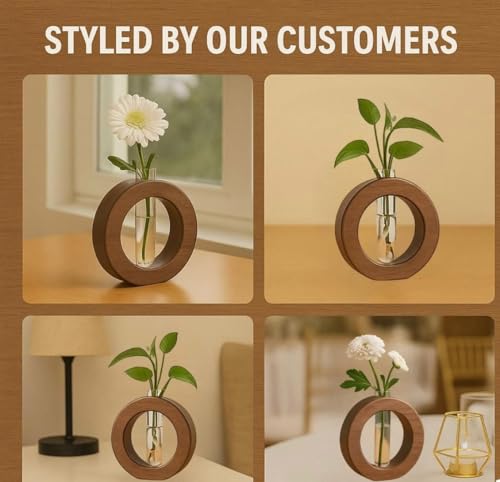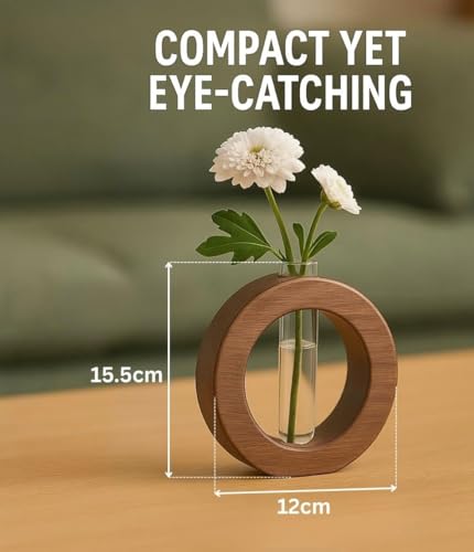WOODSOME™ Decorative Glass Test Tube with Donut Wooden Holder Vase for Flower Plants Home Decor Office Living Room Bedroom Table Gifts Decoration Items