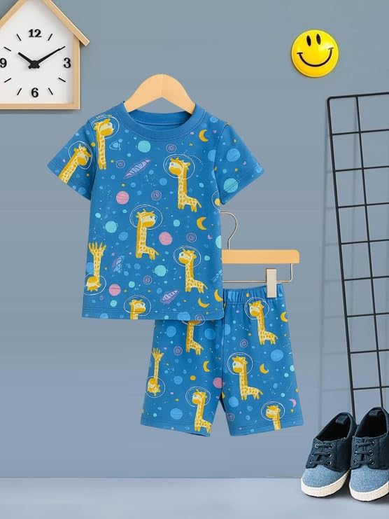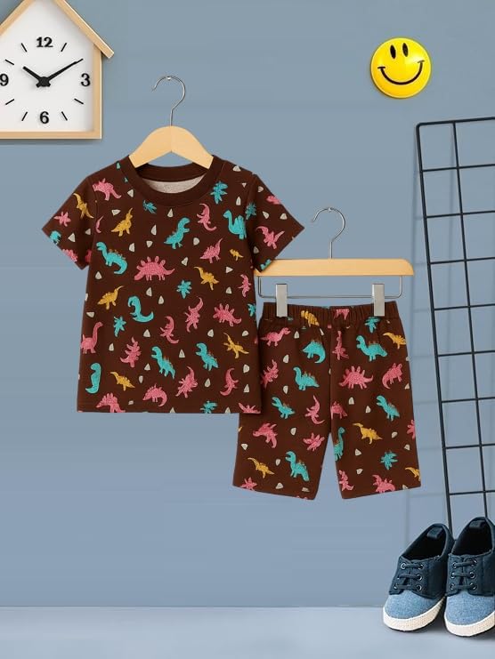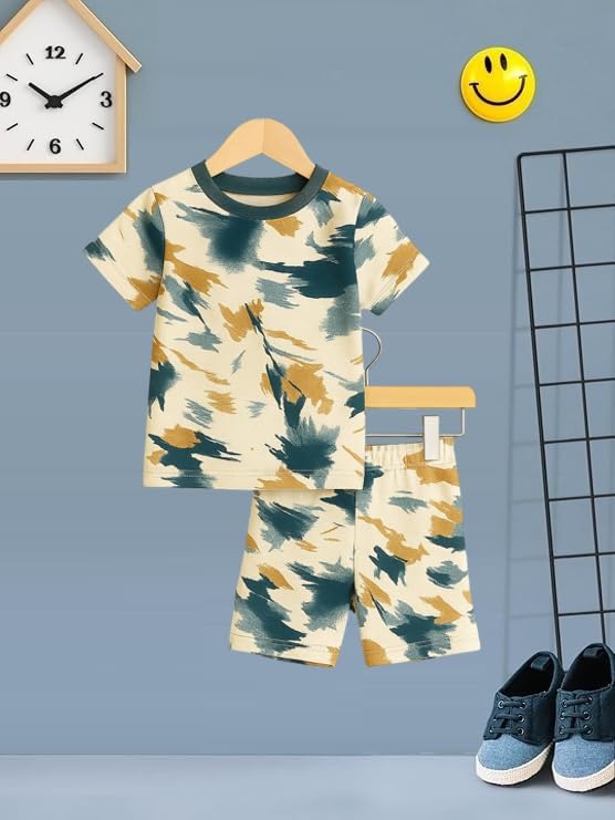 UZARUS Kids Boys’ Printed T-Shirt and Shorts Combo Set | Comfortable Summer Wear | Daily Casual Outfit |