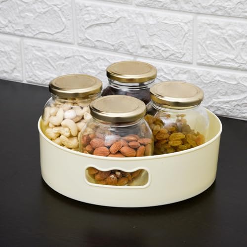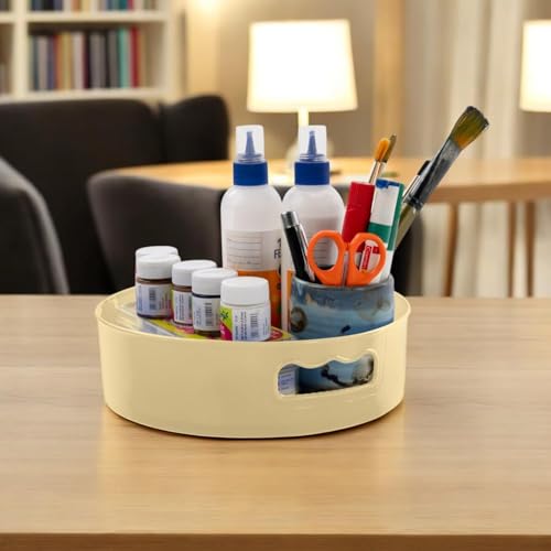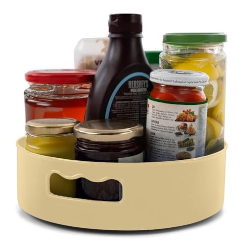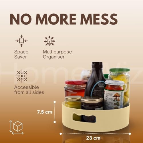 HomeWiz Multi-Purpose 360° Rotating Organizer Tray | Kitchen Accessories Items | Kitchen Organizer Rack | Kitchen Tools | Easy - Access Turntable for Spices, Storage & More | Cream