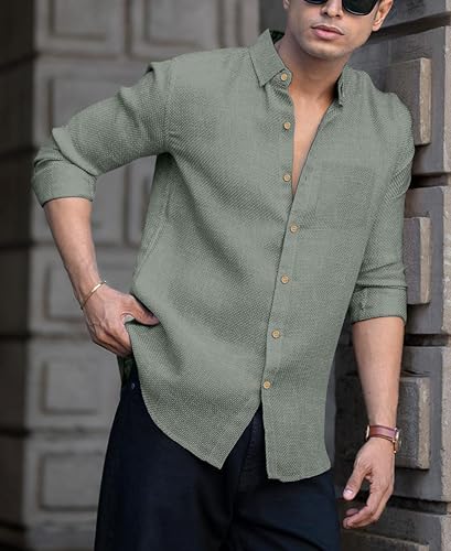 Men's Solid Linen Cotton Shirt | Casual | Plain | Full Sleeve | Summer-Regular Fit| Men Stylish Shirt | Everyday Formal Wear