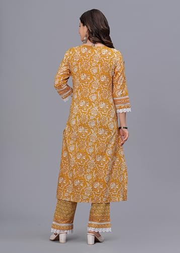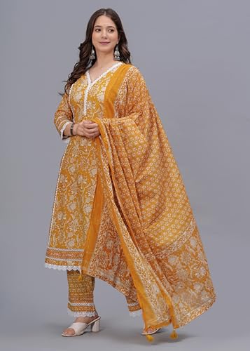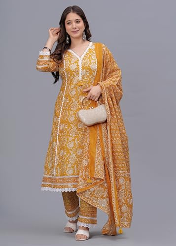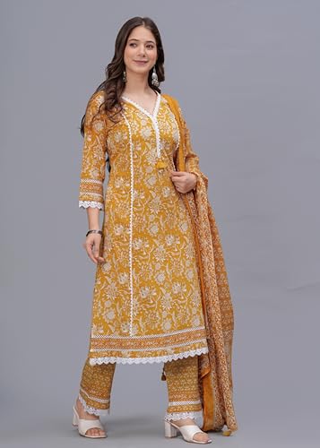 Amayra Women's Pure Cotton Printed Straight Kurta Set with Palazzo Pants & Dupatta- Ethnic Wear