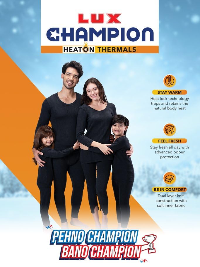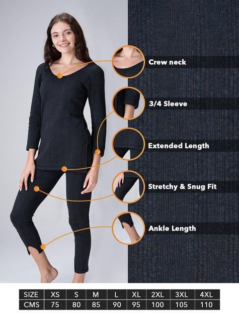 Lux Champion Women's Thermal Wear Set | Warm & Comfortable Thermals for Women | 3/4 Top & Trouser Body Warmer Combo for Women & Girls | Premium Lux Thermal Winter Wear Top and Bottom for Womens