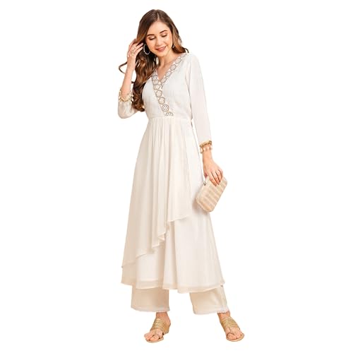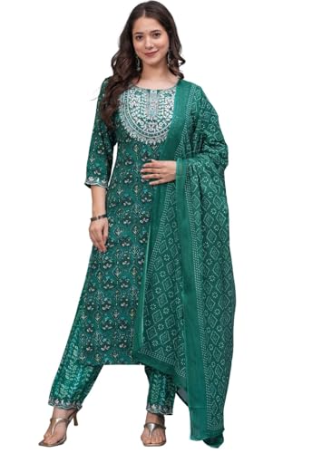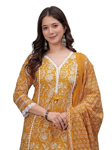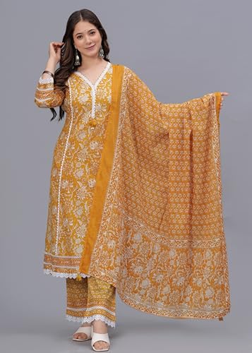 Arayna Women's Pure Cotton Block Printed Ethnic Wear Kurta Set with Palazzo Pants & Dupatta